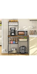 Baker's Rack for Kitchen with Storage, Microwave Stand with Adjustable Shelves and 10 S Hooks, 6-Tier Coffee Bar Station, Kitchen Shelves for Spices, Pots, Rustic Brown