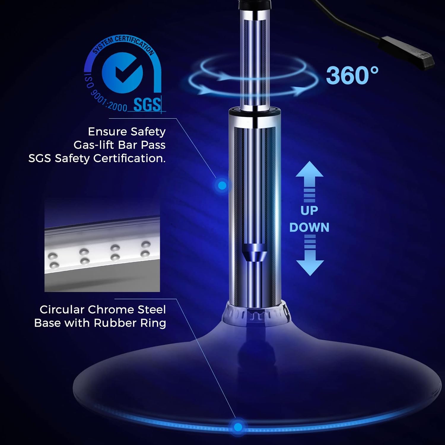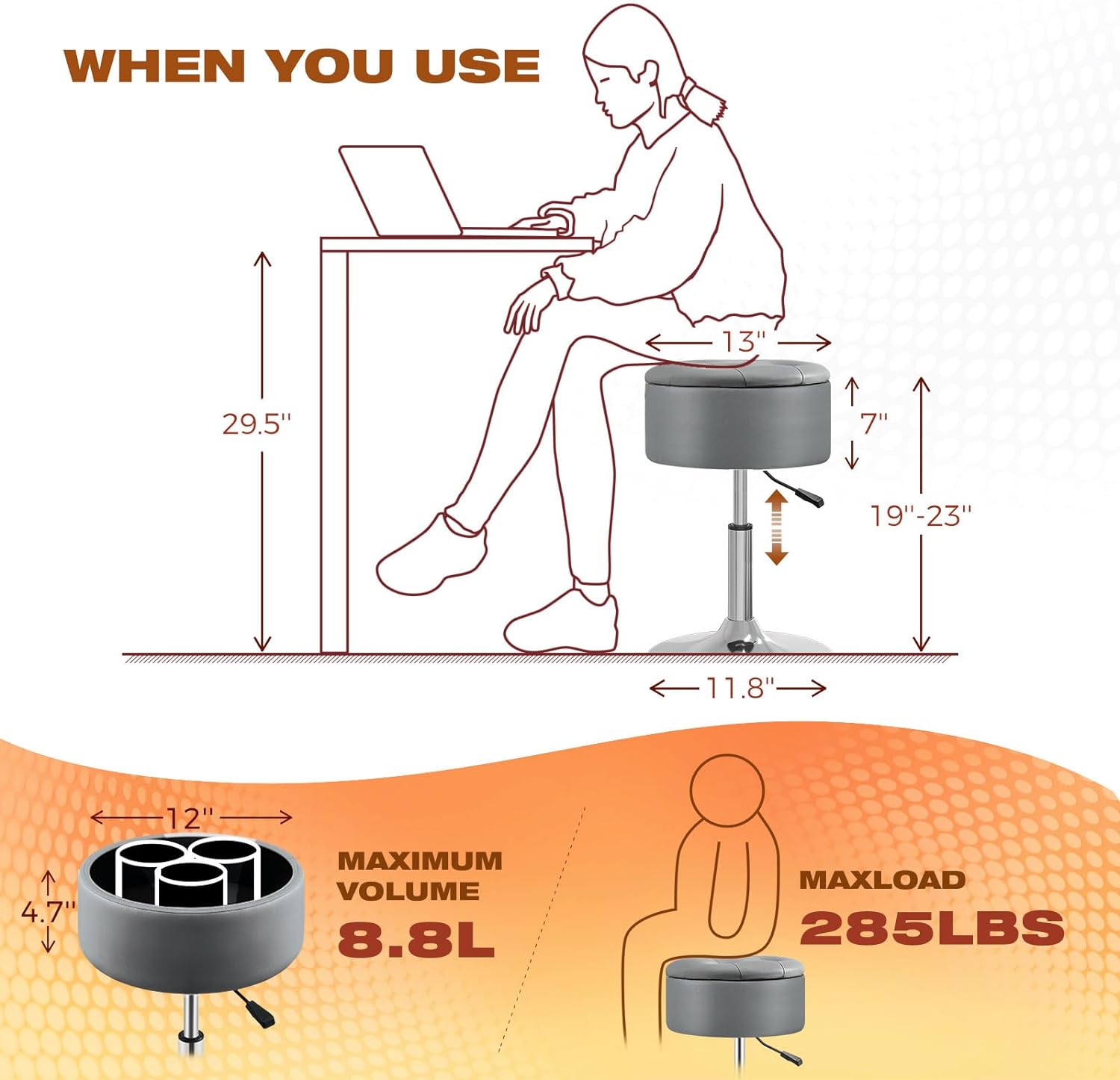 GREENSTELL Vanity Stool with Storage, 19" to 23" Height Adjustable PU Leather Vanity Chair, 360° Swivel Makeup Stool with Removeable Tray, Modern Ottoman for Bedroom Bathroom, Grey