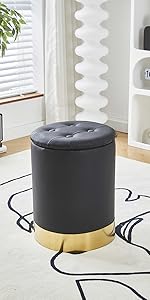Mxfurhawa Velvet Storage Ottoman Multipurpose Footrest Stool with Metal Base Modern Round Vanity Stool Chair Ottoman Foot Stools Support 300 lbs Padded Seat for Living Room (Cream (Velvet))