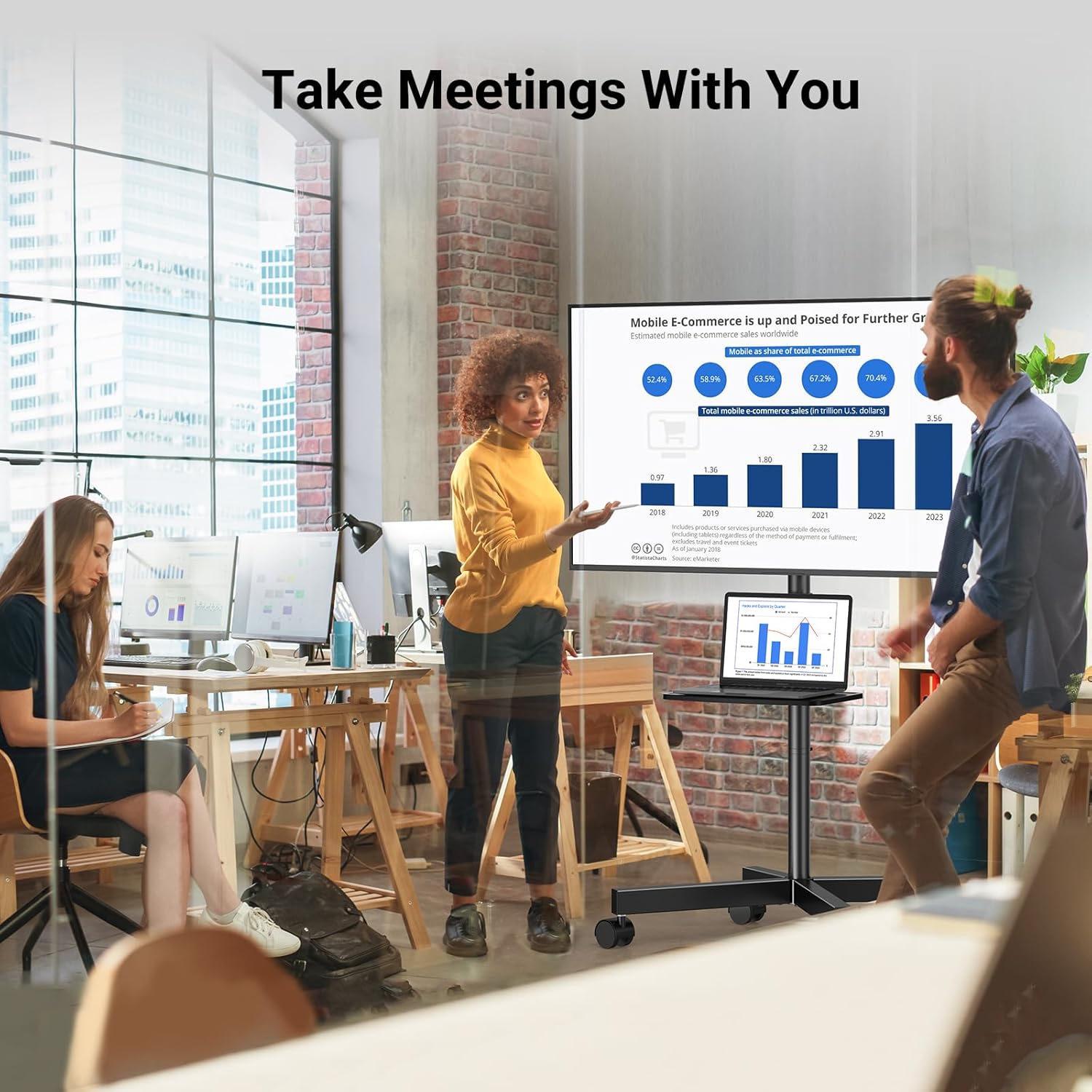 PERLESMITH Mobile TV Stand for 23-60 Inch LCD LED Flat/Curved Screen TVs, Tilt TV Cart Holds up to 88Lbs, Portable TV Stand with Laptop Shelf, Rolling TV Floor Stand Max VESA 400x400mm (PSTVMC06)