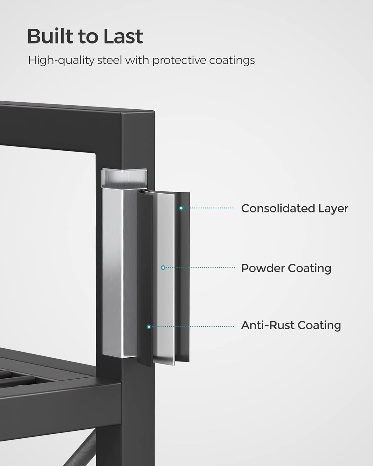 - Solid structure: The robust steel frame with reinforced X bars holds your items stably and firmly.